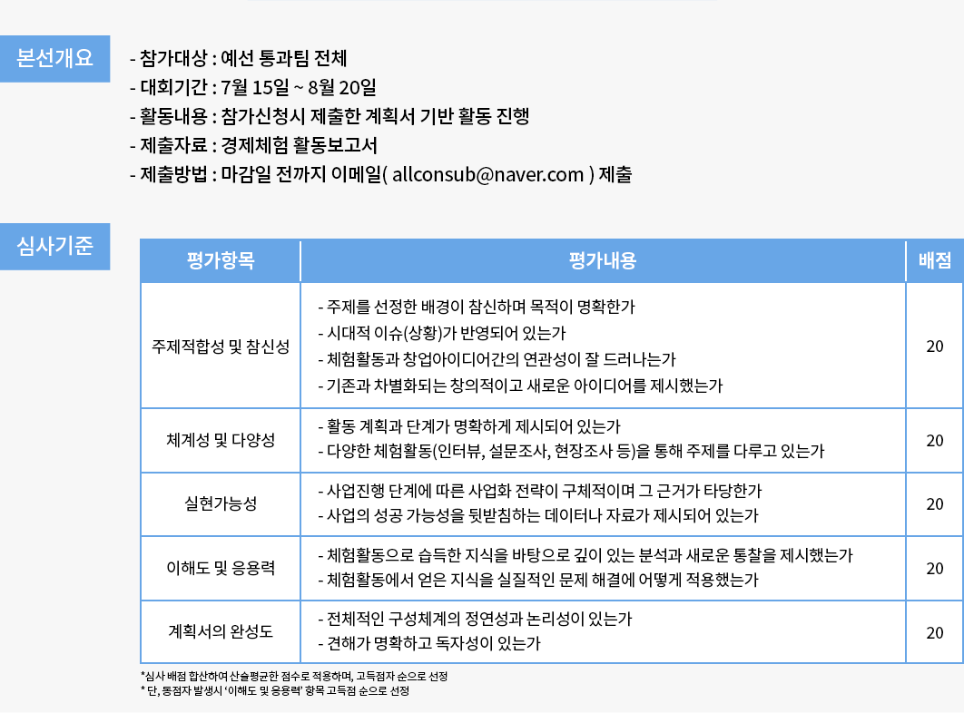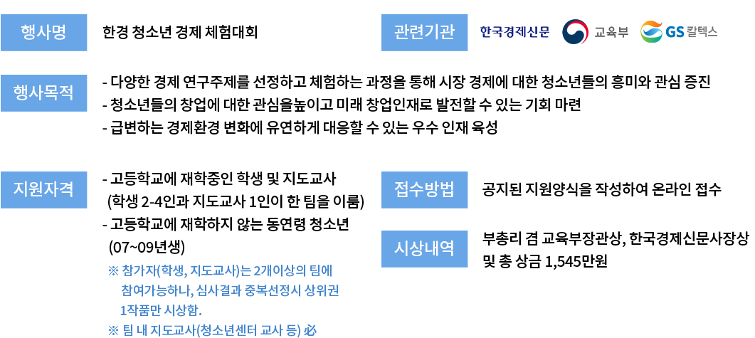 - 참가자(학생, 지도교사)는 두개 이상의 팀에 중복 참여할 수 있으나, 심사 결과 중복 선정 시 최우수 1작품만 시상함.